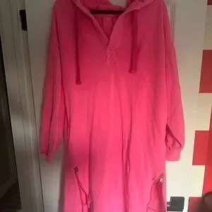 Stay stylish and comfortable with this vibrant pink hoodie midi dress. Perfect for over a swimsuit and any beach bonfire.