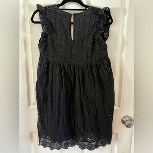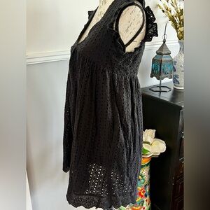 EUC Black Eyelet Babydoll Mini Dress Pockets Lined Built in Shorts Small