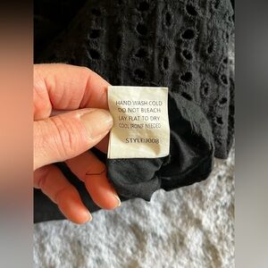 This elegant black eyelet dress is perfect for any occasion. Its classic design offers a timeless look, making it a versatile addition to your wardrobe.