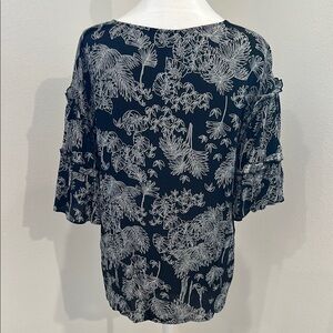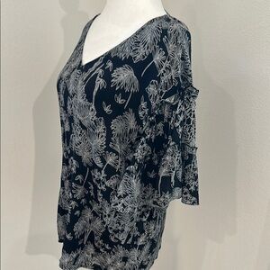 Chic floral blouse with ruffled sleeves. V-neck design. Ideal for versatile styling. In excellent condition. Medium.