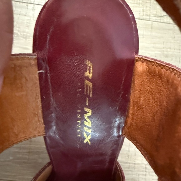 Add a touch of timeless glamour to your look with these stunning RE-MIX vintage-inspired heels. Crafted in a rich burgundy faux croc-embossed leather, they feature an elegant peep toe, adjustable ankle strap, and a sturdy 4” retro cone heel. Made in Italy from genuine leather soles (vero cuoio). These are the perfect statement heels for vintage lovers or anyone looking to elevate their style with a classic touch.