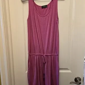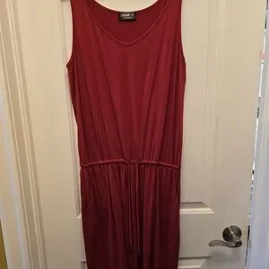 Step out in style in these stunning red, black, pink and black dot patterned bamboo/jersey sleeveless Miik mini dresses. Designed with a drawstring waist and pockets, it offers a flattering fit for any occasion.