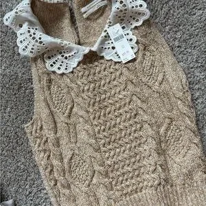 Anthropologie Beige Knit Sleeveless Top with Ruffle Collar