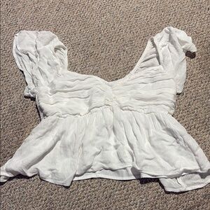 Hollister White Ruched Ruffled Peplum Blouse