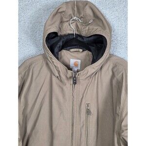 Carhartt Jacket Mens Large Brown / Tan Hooded Quick Duck Thinsulate Full Zip Workwear Outdoors