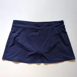 Lands' End Womens 14 Navy Blue Swim Skirt Suit Bottom Lined Built In Brief Beach