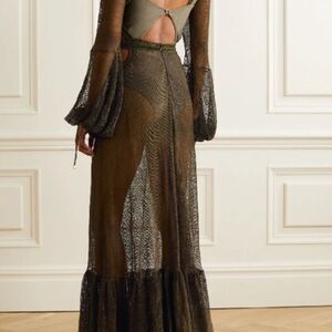 PATBO Cutout Mesh & Stretch Netted Jersey Maxi Dress. Army Green. Worn Once. XS.