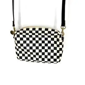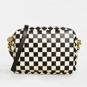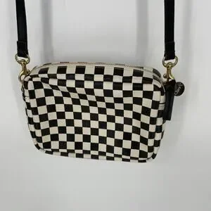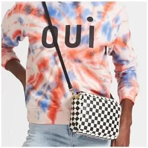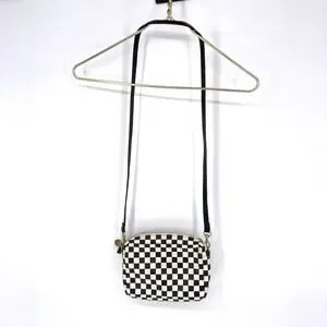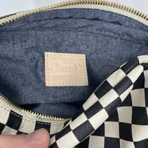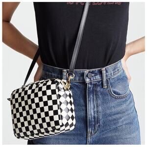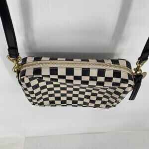Clare V. Midi Sac Bag Checkered Crossbody Bag Purse Small Black and White