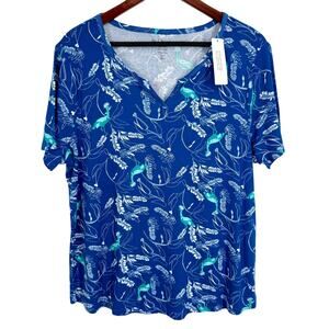 NEW NWT Chicos Plus Size 2X XXL 4 Blue Tropical Birds Blouse Shirt Top Beach