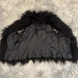 Chic black faux fur vest. Perfect for layering and adding texture to any outfit. 3 hook closure , New condition size small