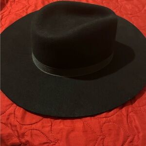 Stylish black wide-brim hat perfect for any occasion. Features a sleek design with a subtle band detail. New never used.. was in closet . Ships ASAP!! Size large