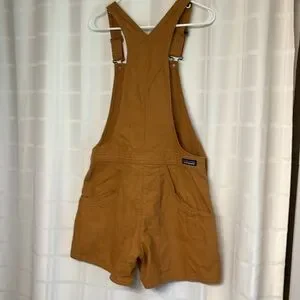 Experience the rugged charm of Patagonia's brown and tan overall cargo shorts, crafted from durable cotton for a reliable fit. These shortalls offer a utilitarian style, perfect for outdoor adventures or casual outings. With their sturdy construction, they are designed to withstand the elements while providing comfort and functionality.