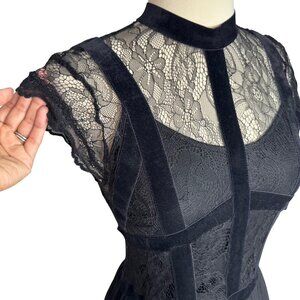 Keywords: black lace dress, velvet maxi dress, formal evening gown, elegant black dress, Miusol dress, long black dress, lace bodice dress, formal wear, evening maxi dress, black party dress, womens maxi dress, lace cap sleeve dress, lace and velvet dress, whimsigoth maxi dress, goth maxi dress, dark fairy maxi dress