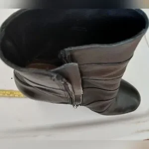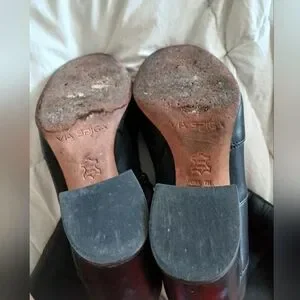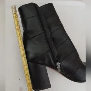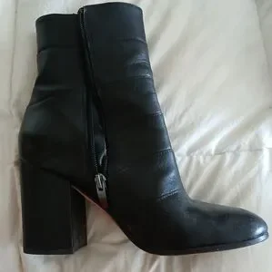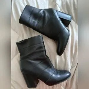 Step out in style with these sleek black leather ankle boots. Perfect for any occasion, these boots offer both comfort and elegance. all leather upper in excellent condition as leather sole shows signs of wear but still has lots of walking to be done!