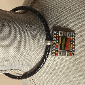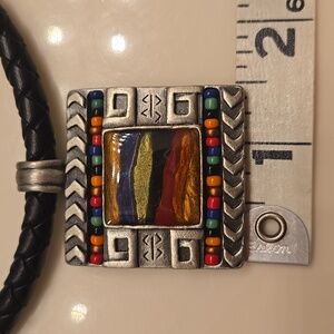 Chico's Leather Multi Stone Pendant Necklace