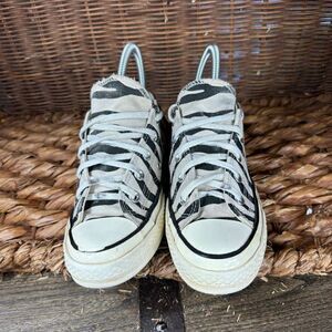 Converse Sz 5 Women's Black White Zebra Striped Mid Top Sneakers