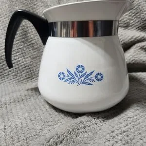 Classic and collectible Corning Ware percolator-style coffee pot featuring the iconic blue cornflower design. Perfect for vintage kitchen collectors or everyday use.