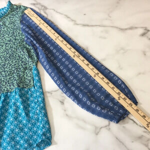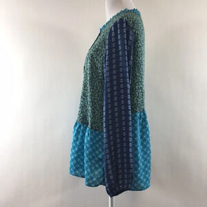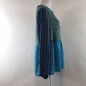 Logo Lori Goldstein Blue Floral Patchwork Grechen Tunic Shirt Womens XS Blouse