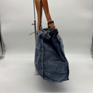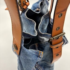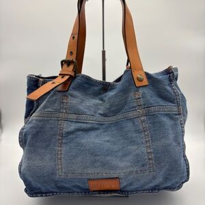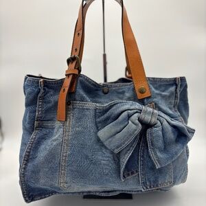 RED Valentino blue denim and leather bag with leather handles. One large pocket and one smaller at the front of the bag. Light weight. Made in Italy