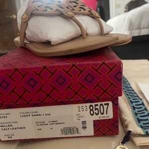 Tory Burch 2024 Logo Sandals w Receipt Box without Dustbag Sz 10 Purchased from Neiman Marcus. NM shopping bag included.
