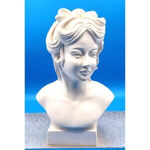 White Bust Elegant Woman Grecian Maiden Intricate Hairstyle Cast Marble Statue