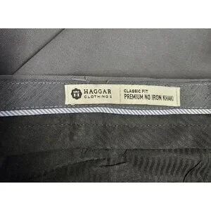 Haggar Pants Mens 42x30 Classic Fit Premium No Iron Khaki Flat Front Gray New