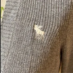 Abercrombie & Fitch Grey & White Varsity Coastal grandma cardigan