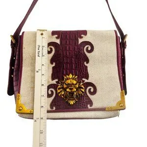 Sharif Canvas & Crocodile Leather Crossbody Bag With Lion Head Accent