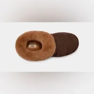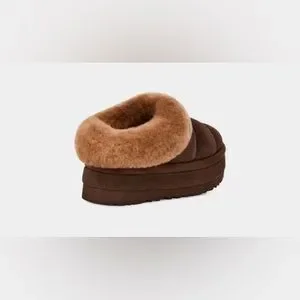 The Tazzlita takes the coziness of the iconic Tasman to the next level. The soft UGGplush™ upcycled wool interior spills out into a 17mm Tablegrade collar over the luxe suede upper. Boasting a heightened platform for more of a fashion silhouette, this slipper feels as at home at the grocery store as it does watching movies on the couch.