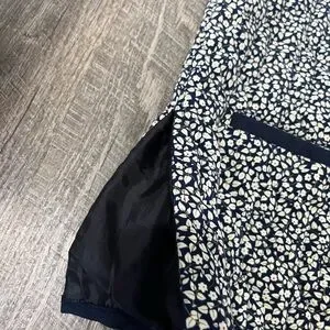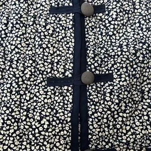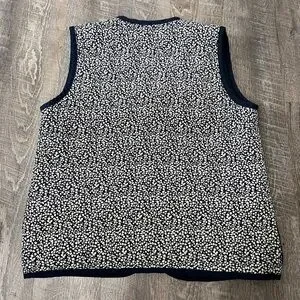 Handmade quilted vest with white florals and navy blue fabric, with three button down the front. Perfect vest for fall or spring! In great condition. No tags so I suspect itβs handmade. No size see measurements below.