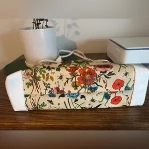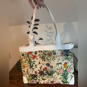 This elegant tote bag features a cream and white color palette with a vibrant floral pattern, perfect for adding a touch of nature-inspired charm to your ensemble. Its structured design ensures durability and functionality, making it an ideal choice for everyday use. The tote's spacious interior and sturdy handles make it a practical yet stylish accessory.