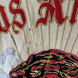 This vintage Ed Hardy Los Angeles polo t-shirt is a must-have for fans of the iconic brand. The shirt features a bold tiger design on a yellow background with embroidered details. The short sleeve shirt is made of comfortable cotton material and has a regular fit, perfect for any occasion.