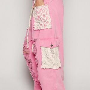 New POL Clothing Distressed Joggers Women’s Sweatpants Y2K Pink Overiszed Pants