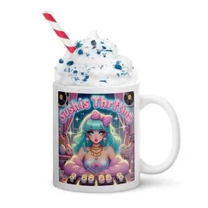 This 11 oz Mug brings the flavor and the flex — a graffiti-dripped masterpiece straight from the back alley of your favorite anime sushi shop. Neon soy splatters, sashimi tags, and miso-slick deals blast across the tote like a streetwear snack attack. It’s bold, it’s raw, and it’s half-off if you can out-thrift the tuna.