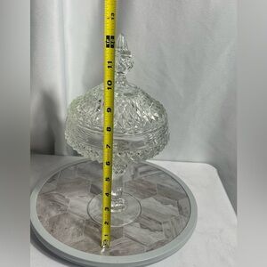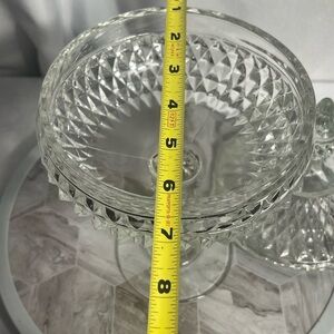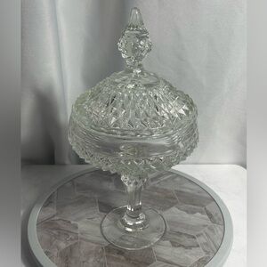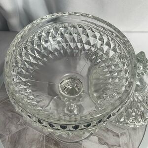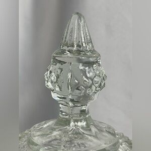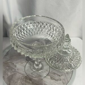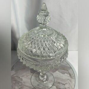 Vintage MCM Glass Diamond Point Clear Glass Lidded Candy/Nut Dish Elegant Classy