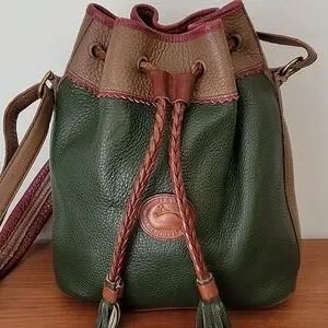 Dooney & Bourke Vintage Teton Drawstring Bucket Bag Green Drawstring