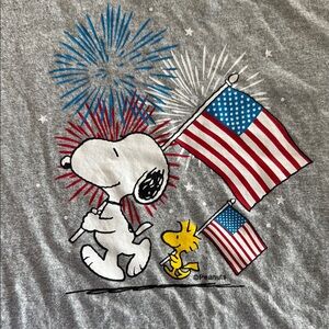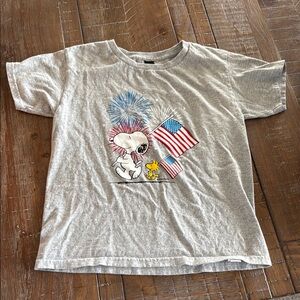 Peanuts 🇺🇸 Gray Snoopy Fireworks T-Shirt Unisex Kids Small, EUC