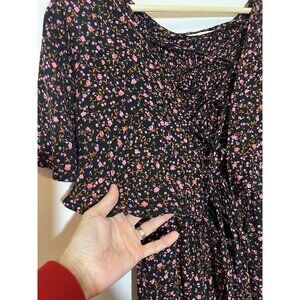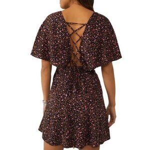 Free People Women's Florence Tie Floral Mini Dress Size Small Boat Neck