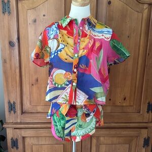 Farm Rio multicolor summer picnic shirt, brand new with tags. Beautiful lightweight, vibrant summer staple! Can be worn as a swim coverup or as a top for the warm weather. Shorts are also available in another listing in my closet