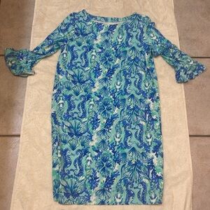 Lilly Pulitzer UPF 50+ Mini Sophie MermaidCore Aqua Ruffle Sleeve Ruffle Dress. Hardly worn.