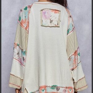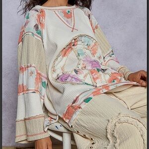 P668–(SHIPPED) POL Cream and Floral Peace Sweater Tunic