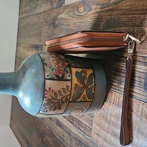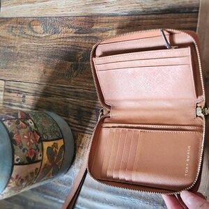 Tory Burch Women's Tan Leather Clutch Wristlet / Wallet.