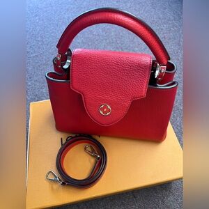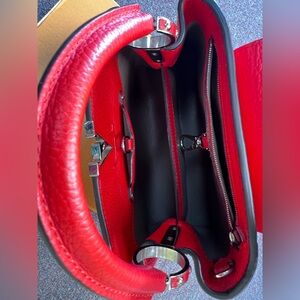 Experience the epitome of luxury with the Louis Vuitton Red Satchel, a masterpiece of elegance and functionality. Crafted from premium materials, this bag features a structured design that maintains its shape beautifully. The vibrant red color adds a bold statement to any ensemble, while the top handles and optional shoulder strap offer versatile carrying options. Elevate your style with this sophisticated accessory that embodies the timeless allure of Louis Vuitton.