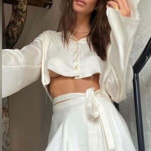 Commense Satin Raw Hem Tied Two Piece Skirt Set
