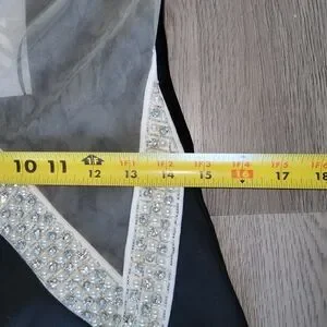 Features and tags: built-in bra, front slit, back zipper, embellished front with semi-sheer material, stretch, wedding, wedding guest, formal, gala, prom, holiday, black-tie, maxi, gown, fall, winter, spring, summer, party, anniversary, birthday, celebrate, New Year's, prom