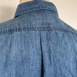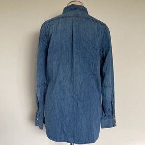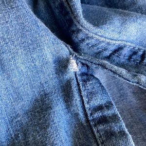 From J.Jill, classic denim pearl snap, 100% cotton, XS, long sleeve in a medium wash. Gently worn, minor flaw at right cuff as shown in the last pic. see pics for details and measurements, and please ask questions.