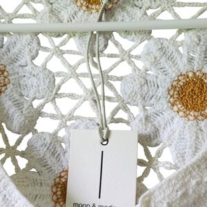 The Moon & Madison blouse is a chic cream top featuring long sleeves and a stylish tie front. This crop blouse is embellished with delicate details, offering a sophisticated and trendy look. Perfect for adding a touch of elegance to any outfit.
