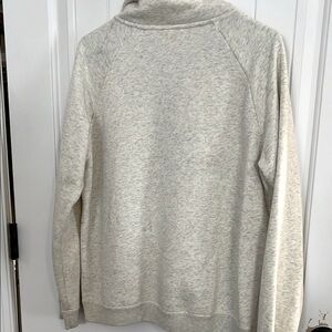 Nike pullover with quarter-zip. Heathered cream with black logo. Casual and versatile.