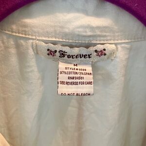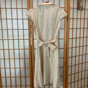 Forever Medium Cream Collared Button Front Vintage Style Short Sleeve Dress
