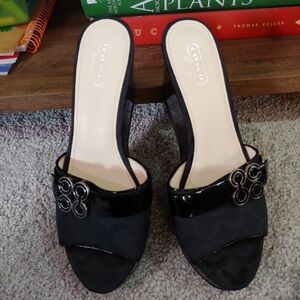 Coach Geri Black Wedge Sandals, Women's Size 9, Black, Like-New!